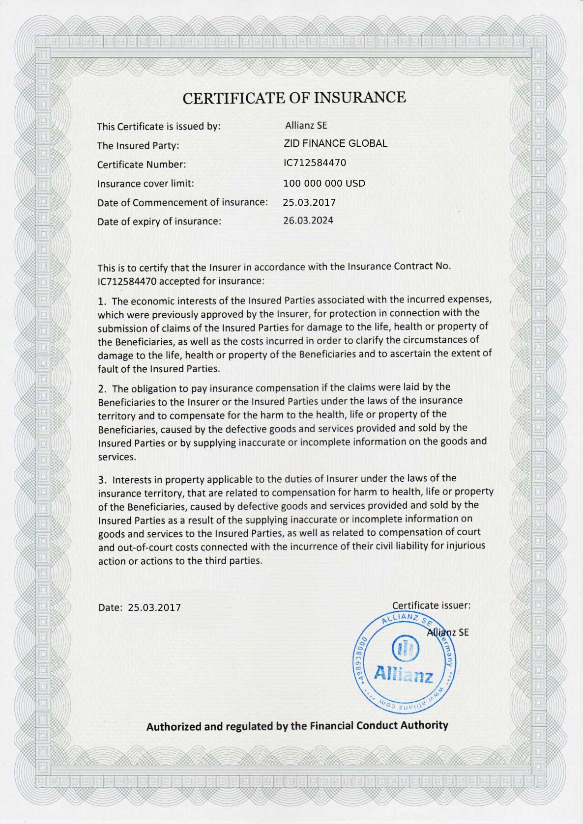 INSURANCE CERTIFICATE